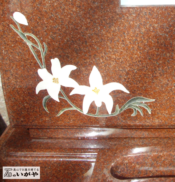 和されました。2色の石材を組み合わせ、お気に入りの花をはめ込み加工する事で、女性に最